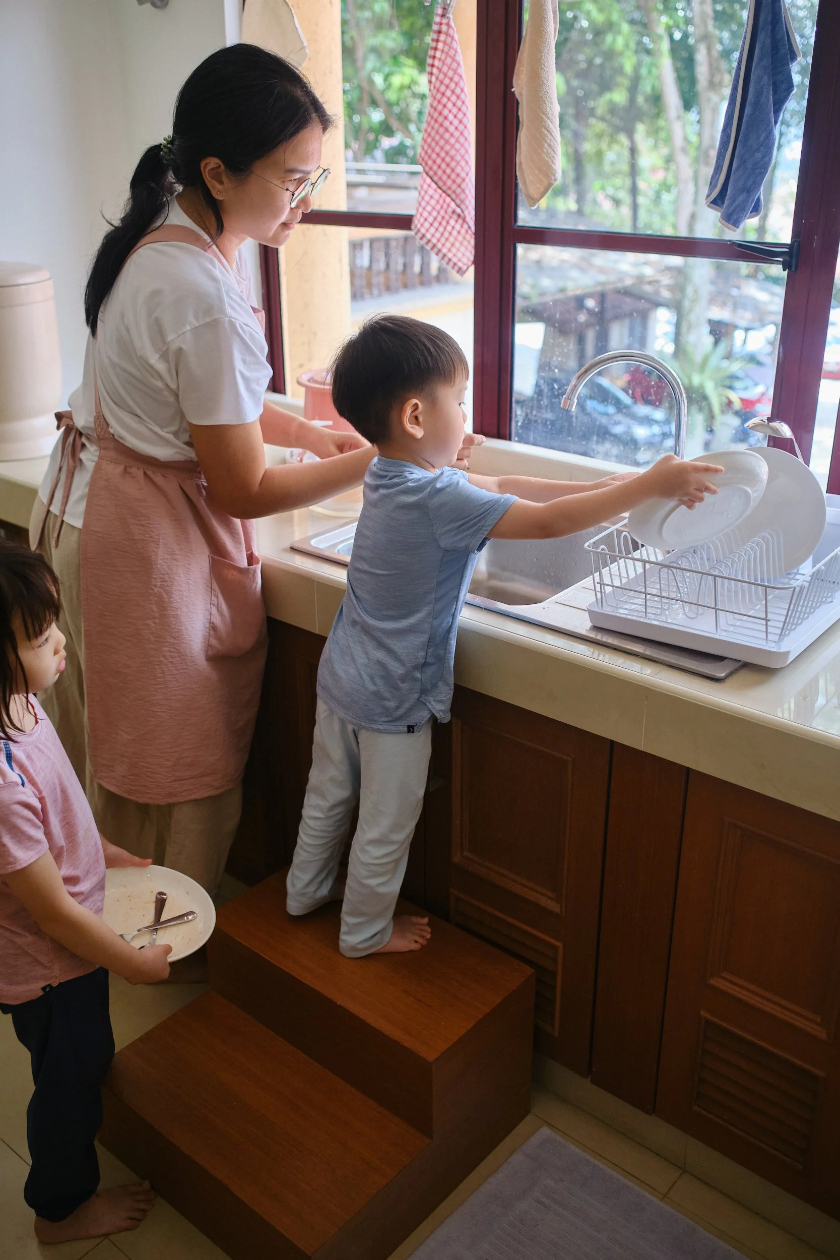 Mealtime also allows teachers to gain insight into a child’s home environment. Habits and practices can be observed through gestures, food preferences, and eating behaviors. For example, children wipe and wash their dishes after eating at school. Children are naturally capable with their hands; what they need are opportunities and space to work. They are doers, and they come to understand the world first through their hands. Involving them in hands-on tasks nurtures their sense of responsibility, belonging, and care.